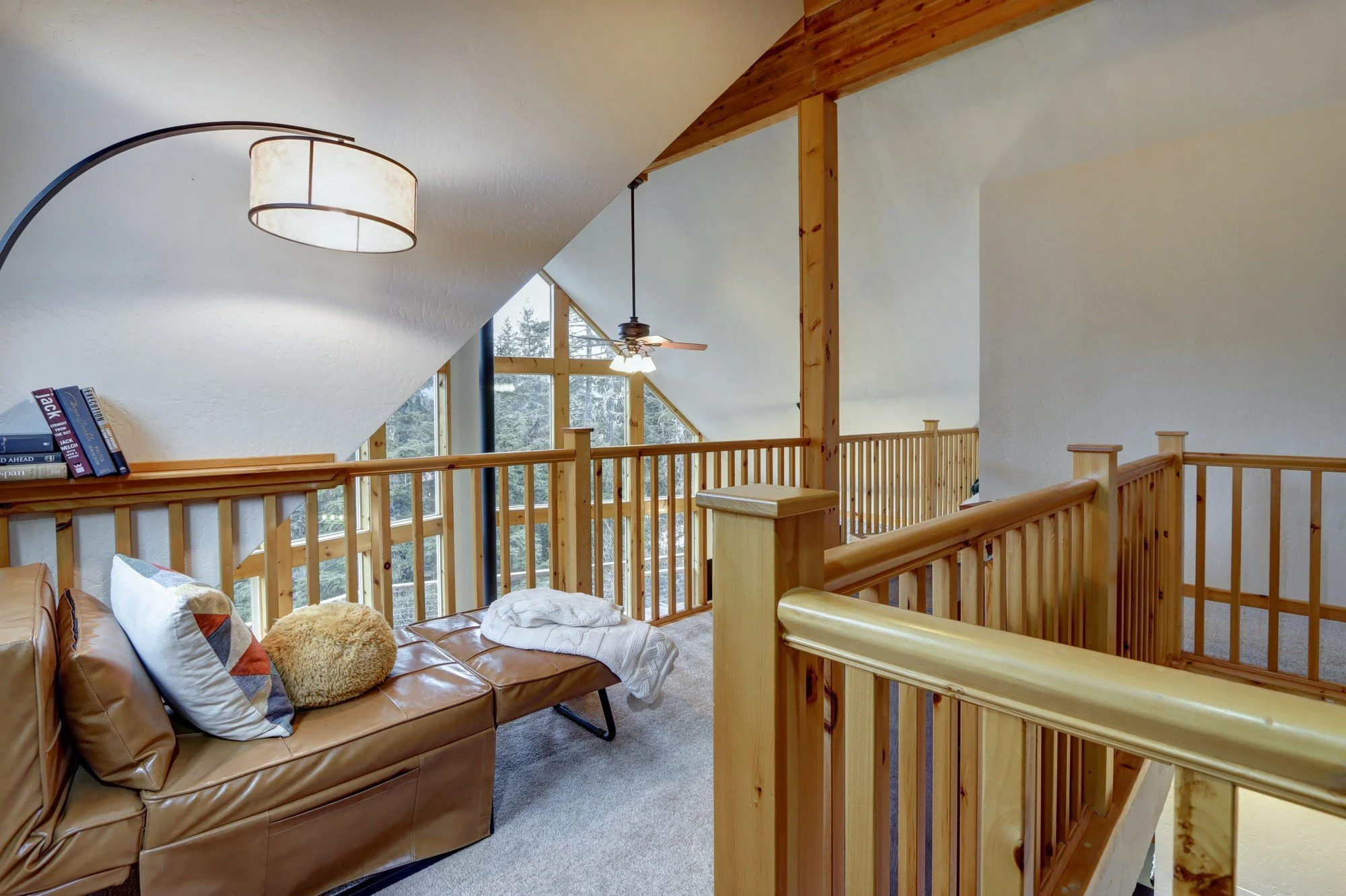 Each area has intent in our home. Our loft offers a desk and large monitor for work or gaming, LOTS of games for all ages, an ottoman that can be used as a chair or for sleeping. Let’s not forget about the “nook” for teens looking for quiet time.